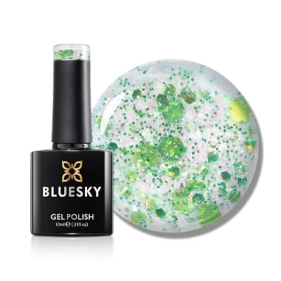 A delicate green glitter that glows with the freshness of verdant landscapes. 21 Day High-Gloss Wear: Long-lasting and chip-resistant gel polish that leaves your nails with a high-gloss finish for up to 21 days. For best results, use with our gel base and gel top coat. Dries in 60 seconds: No need to worry about smudging our Bluesky gel nail polishes as they cure in 60 seconds under our 24W LED UV nail lamp, or 30 seconds with our 48W LED UV gel nail lamp. Easy to Remove: Soak off gel nail polish in minutes with acetone gel polish remover or use our specialised range of nail polish remover products for safe and easy gel polish removal without damaging your natural nails. Vegan-Friendly & Cruelty-Free: Bluesky gel nail polish products are and always will be cruelty-free - we never test on animals. We are also registered by The Vegan Society as Vegan Friendly.