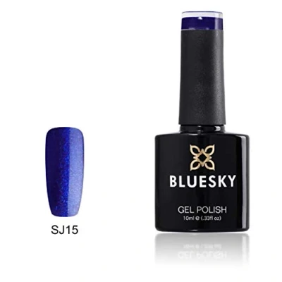 Bluesky Gel Nail Polish, Crystal Royal Sparkly Sj15, Dark Blue Glitter, Long Lasting, Chip Resistant, 10 ml (Requires Curing Under UV LED Lamp)