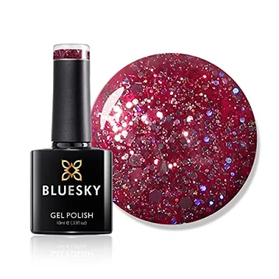 Bluesky Gel Nail Polish, Merlot Red Blz12, Dark, Glitter, Merlot, Red, Long Lasting, Chip Resistant, 10 ml (Requires Drying Under UV LED Lamp)