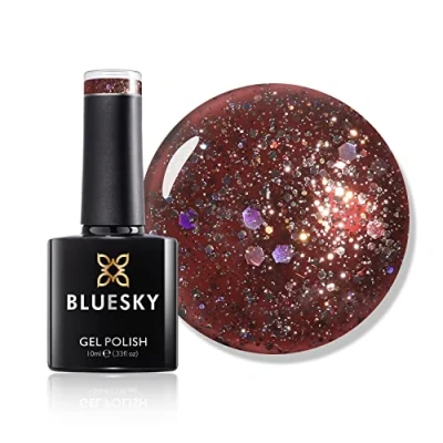 Bluesky Gel Nail Polish, Seductress BLZ16, Maroon, Dark, Glitter, Long Lasting, Chip Resistant, 10 ml (Requires Drying Under UV LED Lamp)
