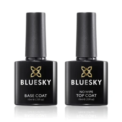 21 Day High-Gloss Wear: The key to the perfect gel polish manicure is the best base coat and top coat. This quick-curing, non-yellowing, No Wipe Top Coat & Base Coat duo gives you a long-lasting, chip-free results with a high shine finish. No Peeling or Staining: The Bluesky Base Coat adds a clear layer of protection between your natural nail and the gel polish to prevent staining. It effectively binds the gel polish to the nail for a longer-lasting, perfect manicure. No Wiping Required: The Bluesky No Wipe Top Coat is the most convenient top coat to finish your gel nail polish manicure. Simply apply and cure, for a high-shine, long-lasting finish. Dries in 60 seconds: No need to worry about smudging our Bluesky gel nail polishes as they cure in 60 seconds under our 24W LED UV nail lamp, or 30 seconds with our 48W LED UV gel nail lamp. Easy to Remove: Soak off gel nail polish in minutes with acetone gel polish remover or use our specialised range of nail polish remover products for safe and easy gel polish removal without damaging your natural nails.