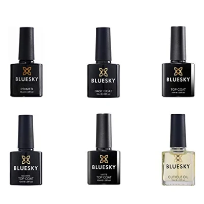 Set of 6 Essentials for the perfect gel polish Manicure - PRIMER, Base Coat, top coat, No wipe top coat, matte top coat, cuticle oil Long lasting and chip resistant, keeping your nails looking amazing for up to 14 days. Safe and easy to remove with BLUESKY Gel nail polish remover or acetone Perfect for a Christmas gift, Stocking filler, birthday gift or just to keep all to yourself! Lots more nail accessories and essentials available