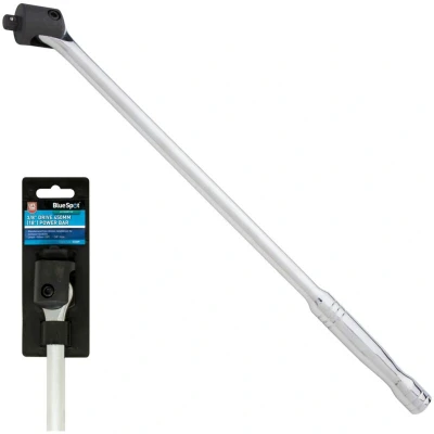 General description The Blue Spot Tools 3/8" 450mm (18") Power Bar is designed for enhanced strength and durability, making it ideal for applications requiring extra torque or reach in tight or tough locations. Technical specifications Length: 450mm (18") Drive size: 3/8" Material: Carbon steel with chrome-molybdenum head