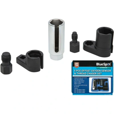 BlueSpot 5PCE Oxygen Sensor & Thread Chaser Set The BlueSpot 5PCE Oxygen Sensor & Thread Chaser Set is designed to be used on oxygen sensors on modern vehicles. The sockets and chasers come complete in a robust storage case. The design of the sockets enables the user to fit the sockets over the wiring harnesses. Manufactured from heavy-duty alloy steel. Package Contents - Thread chasers M12 x 1.25 & M18 x 1.5mm. 3/8" Drive: Straight 80mm Deep 22mm & Offset 31mm High 22mm. 1/2" Drive: Offset 50mm High 22mm. To activate the manufacturers lifetime guarantee, you will need to register the product on the Bluespot website within 30 days of purchase.