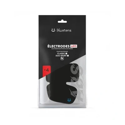 Black anatomical replacement electrodes for abdominal use To be used exclusively in pairs on the abdominal area Compatible with BluetensClassic 2 and Duo Sport 2 Compatible with Bluetens Classic 2 and Duo Sport 2