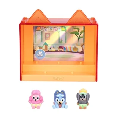 Bluey Fuzzies Episode Pack: Baby Race. With 3 Specially Flocked Collectible Mini Figures (Incl. 1 Exclusive), Display Case, Trading Card, and Collector's Guide. 80 to Collect in Series 1!