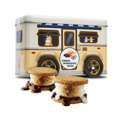 Complete Hampers: This Bluey-themed gift set combines a wheeled money box for kids with delicious s'mores ingredients, creating an exciting treat adventure that encourages savings habits while enjoying tasty snacks Dual Purpose: The colourful Bluey money box for kids turns playtime into learning opportunities, helping children develop financial responsibility through fun savings while storing pocket money securely with easy roll wheels S'mores Ready: These tins include everything needed for delicious s'mores - 4 giant marshmallows, dark chocolate buttons, and digestive biscuits - ideal for family bonding moments around the campfire or kitchen adventures Christmas Gift Solution: This treat tin hamper solves gift-giving challenges for birthdays and Christmas, with their favourite Bluey character, the perfect stocking filler for kids! Wheeled Design: The mobile money box features smooth-rolling wheels that make savings interactive and engaging, encouraging kids to move their money tin around whilst keeping coins and notes organised and accessible, ideal Bluey gifts for girls and boys