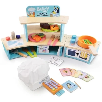 Bluey Tabletop Restaurant Playset Wooden Pretend Play Kitchen for Kids with Oven, Sink, Fridge & Cooking Accessories FSC Certified Toy Imaginative Role Ages 3+