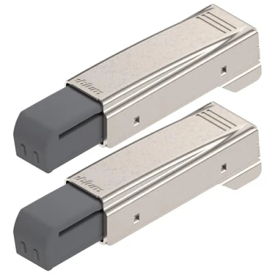 For use with Blum clip top hinges Automatically adjusts to the closing force of the door Mounting method: clip-on, standard hinge, corner stop Nickel-plated steel