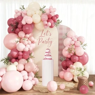 💗Blush Pink Balloon Arch Kit - 110pcs retro pink balloons pack including Retro Rose Balloons(10 x 5”, 20 x 10”, 1 x 18”), Soft Pink Balloons(10 x 5”, 20 x 10”, 1 x 18”), Pastel Pink Balloons(10 x 5”, 15 x 10”, 1 x 18”), Sand White Balloons(5 x 5”, 10 x 10”, 1 x 18”), 1pc balloon chain and 5 sheets of polka dot adhesive for any party decorations 💗High Quality Material Balloons: Includes a wide range of balloon sizes, made of natural latex to ensure non-toxic and safe to use as balloon decorations for parties. They are much more durable than ordinary balloons and will keep their shape for a long time after inflation, so you can enjoy a perfect party time 💗Wide Application: Pink rose gold balloons are unforgettable party decorations in party supplies, made into balloon garland arches are perfect for baby showers, PROM decorations, engagements, anniversaries, wedding receptions, birthday parties, business celebrations and themed parties, engagement parties and more 💗Easy To Assemble: This Pink Balloon Arch Set comes with 106 latex balloons in different colours that can be filled with air and helium and last for hours. We give you tools to make the assembly time and effort saving. You can make a perfect balloon garland arch with different sizes of balloons, arrange them where you want and add a romantic corner to your party 💗Warranty & Service: Please be careful to avoid sunburn, excessive heat, sharp objects, and over-inflate the balloons. After inflated, the color effect of the pink balloons will become lighter, and the color of the retro pink balloon garland arch may vary under different lights, Manufacturer: DOOFE