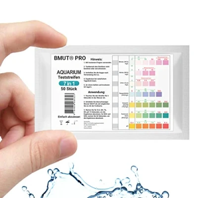 German instructions: 7-in-1 for the optimal life of your fish or other water qualities. The test shows when a water change is recommended. For this purpose, conveniently compare test strips with the label on the bag. Easy to use: with this simple test, no complex instructions are required. Everything can be read clearly using the label at a glance. Important values: nitrates (NO3) nitrite (NO2) chlorine (CL2) total hardness (GH) total alkalinity (GA) carbonate hardness (KH) pH value Certified: controlled for the well-being of your fish. Ensured by ongoing quality controls. 50 test strips: in a convenient bag of the highest quality.