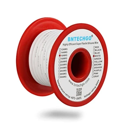 BNTECHGO 16 Gauge Silicone Wire Spool White 25 ft Ultra Flexible High Temp 200 deg C 600V AWG Rubber 252 Strands of Tinned Copper Stranded for Model Low Impedance