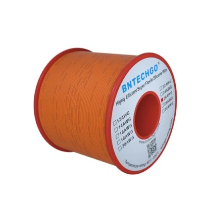 High Quality Ultra Flexible Soft Silicone Rubber Copper Wire!Super Low Impedance,Highly Efficient! High strand count copper core,26 AWG silicone stranded wire has 30 strands 0.08 mm tinned copper wire,the copper strands are tinned,protecting them from corrosion and making it easier to solder. They are constructed with premium silicone rubber insulation.High temperature resistance 200 degree C,Low temperature resistance,in extreme cold -60 degree C.Rated Voltage: 600 volts.Outside diameter 1.5 mm,tolerance +/- 0.1 mm. 26 gauge silicone wire spool: Orange total 250 ft. BNTECHGO silicone wire are widely used for model planes,model cars,model ships,lamps,household appliances,electric heating appliances,meters,instruments,motor and digital fields., Manufacturer: bntechgo.com