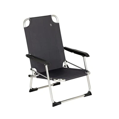 Compact aluminum beach chair with stabilizers. The classic with proven quality. Extra strong two-tone 600 denier polyester runner. Additional safety by means of a safety lock.