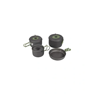 Complete 4-part light weight cooking set. Consisting of 3 sauce pans and a frying pan. Heat resistant and fold-in handles. Also suitable for kerosene stoves. The pans are compact to store and transport..