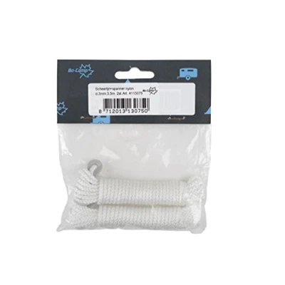 Guy rope and tensioner. Cut at the required length. 2 units of 350 centimeter, including 2 aluminium tensioners. Doesn't shrink or stretch under the influence of rain and/or sun.