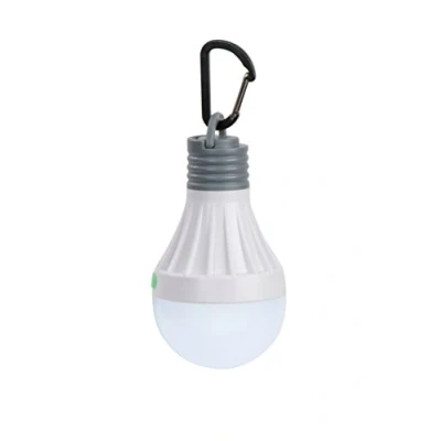 A pendant lamp in the form of an incandescent lamp. 2 different light settings (50% and 100%). Can be hung on the carabine hook. Splash proof. Works on 1x AAbatteries (not included).