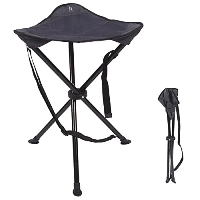 Extra sturdy 3-legged stool with a comfortable seating. Very portable due to its light weight, the carrying strap and accompanying carry bag. Strong frame, padded seat and an extra large sitting area. Suitable for camping, fishing, backpacking etc.. Extra wide feet may occur in the ground.