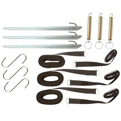 AmazonUniversal complete storm line set. 3x storm straps, 3x storm pegs, 3x springs, 3x s-hooks. 2-parts turbine can easily be connected to each other by means of the buckle parts. Exceptionally suitable for awnings. Straps of 500 centimeter long and 2.5 centimeter wide.