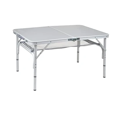 Aluminum table with just under the table top to store items. Extra fine tuning by adjusting screws. Compact storage by removable legs, a handle and a divisible blade. Adjustable in 4 heights. Waterproof and heat resistant.