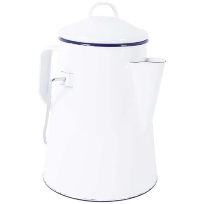 A robust teapot. Finished with a coat of enamel. The polish provides extra hygiene