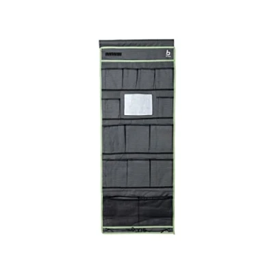 Multifunctional 14-compartment organiser + mirror. Ideal for in the tent or in the caravan. Comes with 2 large compartments, 6 medium and 6 small compartments. Can be attached with Velcro attachment, a string or with eyelets. Including loops below for extra attachment.