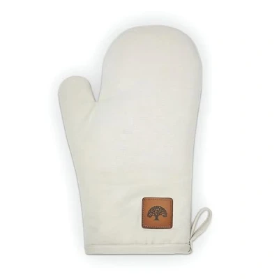 BO877005 Barbary & Oak Cotton Single Oven Glove with Leather Detail, Quilted Stitching, Cream