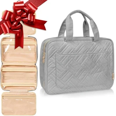 Amazon Our travel toiletry bag has 14 elastic bands & large PVC-covered pockets. Its size of 33.5x13x23cm allows you to fit in all your items, and the rotating metal hook makes it easy to hang anywhere. If you want a large makeup bag or a travel accessories organiser, Boacay toiletry bag is for you. It is multifunctional, features metal zipper pulls & it’s made of only high-quality materials. Keep your travel essentials organized & safe with our sturdy foldable & hanging toiletry bag. It is waterproof, water repellent, and features a foam layer for extra protection. If you need a gift idea, you will love this cosmetic bag. Boacay bathroom & shower bag makes the perfect present for women, girls, and even kids. Moreover, it also works well as a makeup case. Boacay portable travel organizer is multipurpose, so it can be used as a hygiene or dopp kit, and hanging wash bag. It is suitable for home, cruise, gym, camping, travel, and many other occasions.