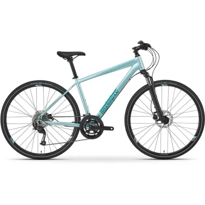 A smooth-welded alloy frame, 63mm Suntour fork and Shimano Altus 2x9 gears give the MTX 8.6 Womens a comfortable, confident feel across mixed terrain, backed by hydraulic disc brakes and women-specific touchpoints.Key Features:Smooth-welded 7005 alloy frame with stable hybrid geometrySuntour NEX 63mm suspension fork for extra comfort on rough groundShimano Altus 2x9 drivetrain for a wide, practical gear rangeTektro M285 hydraulic disc brakes with 160mm rotorsBoardman 700c alloy wheels with Formula hubsSchwalbe Tyrago 37mm tyres with Kevlar puncture protectionWomen-specific saddle and cockpit sizingAvailable with 0% APR financeThe MTX 8.6 Womens is the entry point into Boardman’s Multi-Terrain Crossover range, designed for riders who want a bike that feels comfortable, capable and easy to ride across a wide mix of surfaces. From rough back roads and towpaths to light trails and daily cycling, it offers stable handling and a confidence-inspiring position that helps you enjoy every part of your route.The lightweight 7005 alloy frame uses smooth welds for a clean finish and offers a relaxed, upright riding posture for good visibility and all-day comfort. Its geometry is shaped to feel composed on uneven surfaces while still rolling efficiently on smoother paths. Female-specific touchpoints—including bar width, stem length, crank sizing and a supportive saddle—help riders find a natural, comfortable fit straight away.A Suntour NEX DS HLO suspension fork with 63mm of travel softens bumps and gives extra control on gravel, roots or broken tarmac. The coil spring design offers predictable performance, while the hydraulic lockout lets you firm the fork up on smooth stretches to keep pedalling fast and efficient.Shimano Altus 2x9 gearing provides a wide range suited to climbing steep hills, cruising at a steady pace or tackling varied terrain. The shifting is straightforward and reliable, with closely spaced ratios to keep you in the right gear. A clutch rear derailleur helps maintain chain tension over rougher sections, reducing the chance of chain drops.Tektro M285 hydraulic disc brakes supply controlled stopping power in all weather conditions, helping you feel confident on damp cycle paths or loose trail surfaces. Schwalbe Tyrago tyres in a 37mm width give a stable, grippy ride with added KevlarGuard puncture protection to help reduce flats.The bike rolls on durable 700c Boardman alloy wheels with Formula hubs, balancing longevity and smooth performance. Practical mounts for mudguards and a pannier rack mean the MTX 8.6 Womens is as suitable for weekday commuting and shopping trips as it is for weekend leisure rides.The result is a versatile, comfortable and easy-handling hybrid that supports riders looking to explore a wide variety of terrain with confidence and enjoyment.