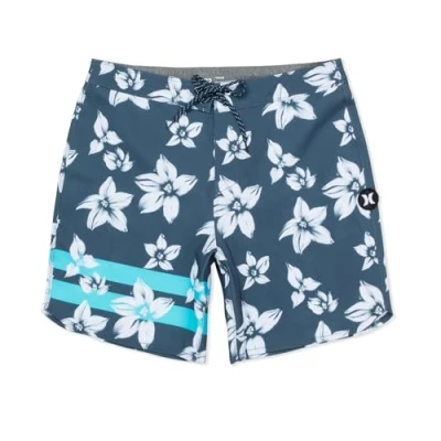 18" length boardshorts for comfort, mobility, and active wear. Drawstring closure for a secure and adjustable fit. Back pocket for practicality and convenient storage. Block Party double stripe print on one leg for bold, sporty style. Hurley logo patch on one leg for subtle branding.