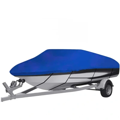 General description This boat cover is designed to fit V-hull styles and sizes, making it ideal for both mooring and storage applications. Made from durable water-repellent oxford fabric, it protects your boat from adverse weather conditions. The cover features quick-release buckle straps to secure it to your boat, preventing it from being blown away. Additionally, it comes with a storage bag for easy transport and protection when not in use. Technical specifications Colour: Blue Material: Oxford fabric with PU coating Dimensions: 440 x 180 x 40 cm (L x W x H) Suitable boat dimensions: 370 x 180 x 40 cm (L x W x H) Includes 4 buckle straps Installation To choose the right size cover, measure your boat first: 1. Measure the center line length. 2. Measure the beam width. 3. If the boat length falls between cover sizes, choose the larger size for the best fit. Other information Delivery contains: 1 x Boat cover 1 x Storage bag