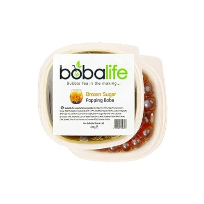 Bobalife Brown Sugar Flavoured Popping Boba 2 Servings (100g), Fruit Juice Filled Pearls for Bubble Tea, Iced Drinks, Desserts, Cocktails & Slush Low Fat, Gluten Free Vegan