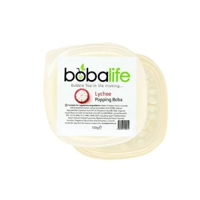 Bobalife Lychee Flavoured Popping Boba 2 Servings (100g), Fruit Juice Filled Pearls for Bubble Tea, Iced Drinks, Desserts, Cocktails & Slush Low Fat, Gluten Free Vegan