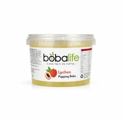 Bobalife Lychee Popping Boba Pearls 600g Fruit Juice Filled Bubble Tea Pearls, Topping for Drinks, Desserts, Cocktails & Slush Vegan Gluten Free