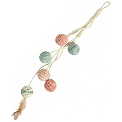 Bobby Bille - Scratching Post Cat Toys In Recycled Rope, With Balls And Feathers, To Hang, Pink, 52 Cm Composition: 100 Percent Paper Rope, Natural Dyes And Feathers Hanging Scratching Post: These Cat Toys Are Ideal Scratching Posts For Daily Maintenance Of Claws They Hang Easily On Any Hook Attractive: The Presence Of Balls And Feathers Make The Toy Attractive Even To The Most Lazy And Sedentary Cats Essential: These Items Are Essential Because They Allow Your Feline Friend To Stretch, Climb And Sharpen Their Claws, While Also Safeguarding Your Home Furnishings