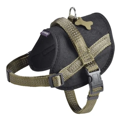 Bobby Easy Safe Dog Harness with Tag Size XXS Reflective Nylon Coat Cover, Adjustable Buckle Closure, Khaki, Chest 27 34 cm