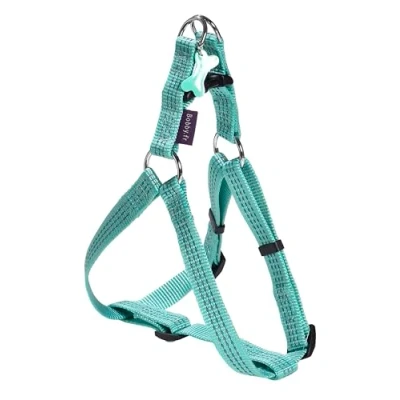 Bobby Safe Reflective Heavy Duty Double Metal Ring Harness for Medium Dogs, Turquoise, Size M/Chest Girth 44 62 cm