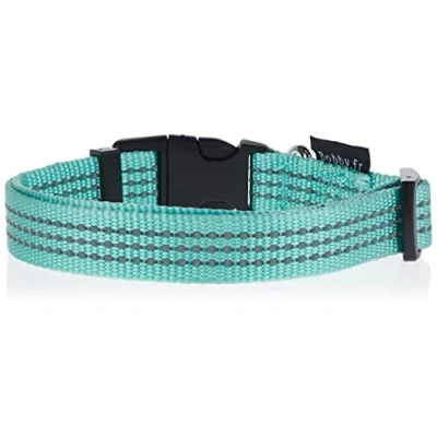 Safe Collection - Fabric collar with reflective straps and soft bone charm. The SAFE collar is the safety product for your dog's walks. Bright colours and reflective stitching will make your cat see. It is also very durable and easy to use thanks to a plastic buckle. Material: 100% Nylon Care instructions: machine washable (30 °C). It is recommended to remove the medal Neck Size 32-52cm Width: 2 cm