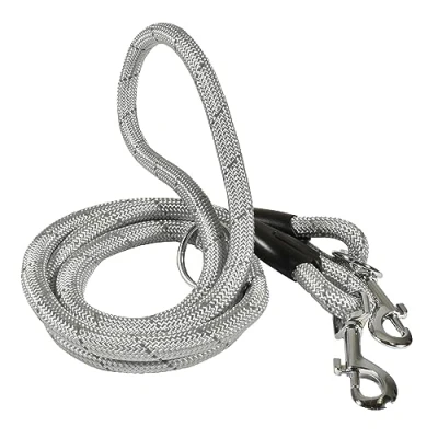 Box contents: The package contains a dog leash made of durable nylon rope in grey colour. Length 189 cm, thickness 1.2 cm DURABLE: Made entirely of braided nylon, this kind of processing makes the product super durable and suitable for even the most lively dogs. ERGONOMIC & SAFE: Ergonomic handle for a secure and firm grip, ideal for keeping your dog at bay when pulling or tugging 3 LENGTHS: The presence of three metal rings along the leash allows you to have 3 different lengths with a single product, making it suitable for all needs. MACHINE WASHABLE: The material ensures the possibility of washing comfortably in the washing machine at a maximum of 30°.