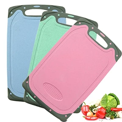 BOCHION Chopping Board Set, 3 Pcs BPA Free Kitchen Thick Plastic Cutting Boards, with Non Slip Feet and Deep Drip Juice Groove, Hanging Hole, Large Boards for Fruits, Vegetables, Meats.