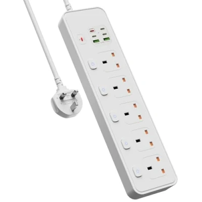 BOCHLION Extension Lead Surge Protection, 5 Way Plug Power Strip with 6 USB Slots, 3M White