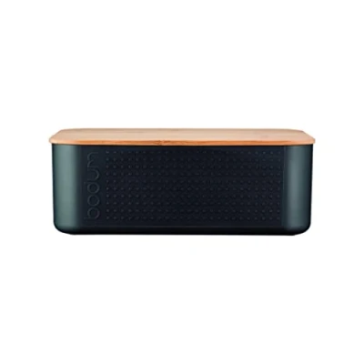 Functional - Large capacity for keeping all kinds of bread, croissants, pastries, cookies, your choice. Keeps them fresh for a longer time, ensuring the right temperature and air circulation. Bodum’s Bistro Bread Box can also be used as a storage solution for different items. Dual purpose lid - Flip the lid over to use as cutting or serving board, plus crumb-catching. Efficient and multifunctional, so you can make the most of it! Eco-friendly - The lid is carefully made of sustainable bamboo. Stylish - Unique design that stands out as a kitchen accessory. Perfect size to fit any countertop without taking too much space. Premium quality - Made in Europe, BPA-free plastic, easy to clean.