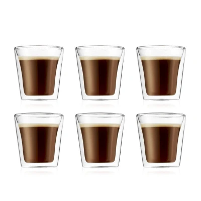Bodum Canteen Double Wall Glass Set, Mouth Blown Borosilicate 0.1 L, Transparent, Pack of 6