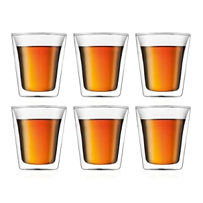 Bodum Canteen Double Wall Glass Set, Mouth Blown Borosilicate 0.2 L, Transparent, Pack of 6