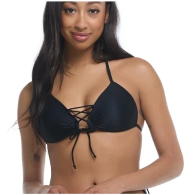 Body Glove Standard Smoothies Baby Love Solid Molded Cup Triangle Push-Up Bikini Top for Women Stylish Triangle Bikini Tops for Women - This stylish swimsuit top for women features molded cups for enhanced shape and a trendy lace-up front; Our bathing suit tops for women are ideal for beach or poolside fun Perfect Fit for All Women - This push-up swim top offers a comfortable and flattering fit; Mix and match our versatile women's bathing suit tops with your favorite bikini bottoms to create your own signature look Versatile and Functional - This stylish swimsuit top offers an excellent fit thanks to an adjustable tie back and neck; Our women's bikini tops offer excellent support for all water activities and feature a full lining that's dyed to match Durable and High-Quality - Made with a smooth, ultra-soft premium microfiber fabric that's 80% Nylon and 20% Spandex, our women's swimsuit tops are built to last and keep you looking your best; Hand wash this string bikini top on cold and hang to dry
