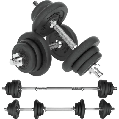 The Body Revolution Adjustable Dumbbell Set is engineered to meet all your weightlifting needs. It includes a variety of components compatible with 1-inch/25mm bars, featuring weight plates, 2 barbells, 4 spin-lock collars, and the essential barbell link. Everything you need is included to kickstart or enhance your fitness journey, allowing you to perform a comprehensive range of exercises right at home.