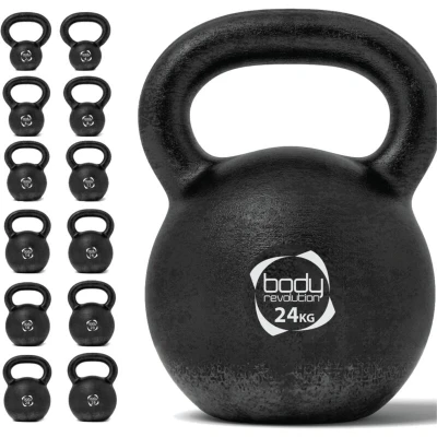 Body Revolution Cast Iron Kettlebell Weight Set 2kg 4kg 6kg 8kg 10kg 12kg 14kg 16kg 18kg 20kg 24kg 28kg Kettlebells Cardio, Aerobics & HIIT Kettle Bell Exercise Weights Gym Equipment