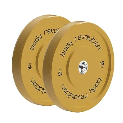 General description Designed for serious lifters and dedicated strength athletes, the Body Revolution Olympic Bumper Plates offer the ideal balance of performance, precision, and durability. Engineered for Olympic-style lifts and compound strength movements, these professional-grade plates are made from high-density rubber and feature a slim profile, allowing for efficient loading and space-saving storage. Whether you’re building your home gym or upgrading your commercial setup, these bumper plates support every stage of your lifting progression. Technical specifications Material: Rubber Colour: Yellow Height: 60mm / 6cm / 2.36" Diameter: 450mm / 45cm / 17.71" Weight per Plate: 15000gr / 15kg Total weight: 30kg Number of plates: 2 Compatibility and accessories Designed for use with all 2-inch Olympic barbells Usage Ideal for exercises such as snatches, clean and jerks, deadlifts, and squats Low bounce design contributes to safer lifting Other information Manufactured with a stainless