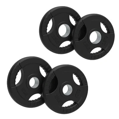 Body Revolution Olympic Weight Plates Rubber Tri Grip Barbell Sets for Lifting and Strength Training Gym Equipment Women Men Black, Set 25kg (2x2.5+ 2x10kg)