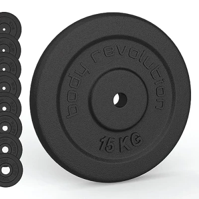 Body Revolution Solid Cast Iron Weight Plates Set for 1 inch/25mm Barbells and Dumbbells Strength Training Building Equipment Men Women, 0.5kg 25kg Pairs